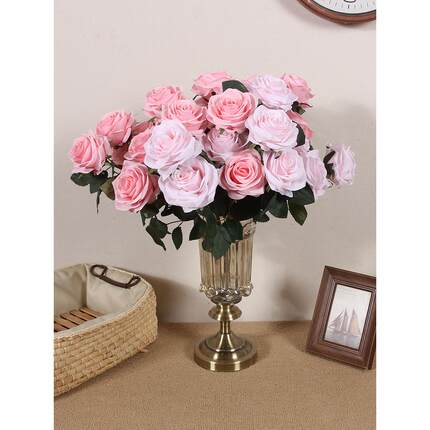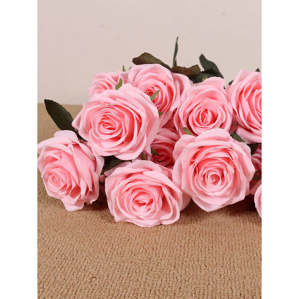 浪漫粉红荔枝玫瑰人造花10朵,网红热款捧照,高品质真丝人造花