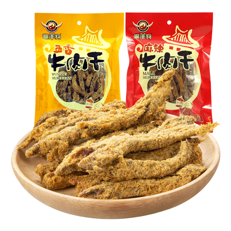 四川特产遛洋狗120g*2袋装牛肉干麻辣五香味成都休闲零食小吃熟食