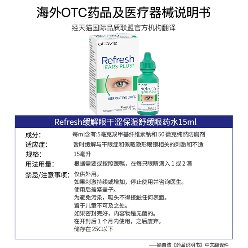 澳洲Refresh润眼液眼疲劳眼药水人工泪液眼干滴眼液隐形眼镜专用