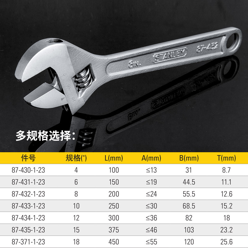 史丹利家用活动扳手4/8/10/12/18/24寸带刻度活络扳手87-430-1-23