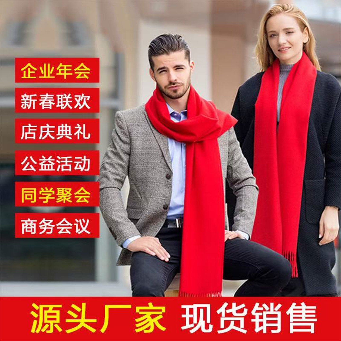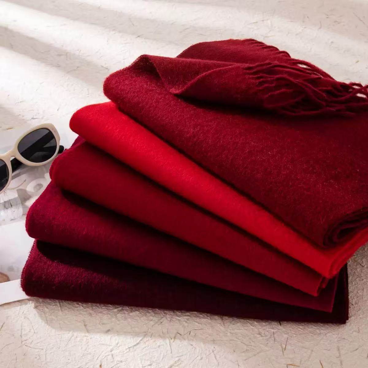 鄂尔多斯市100%羊绒围巾女秋冬季大红围脖男保暖百搭羊毛披肩长款