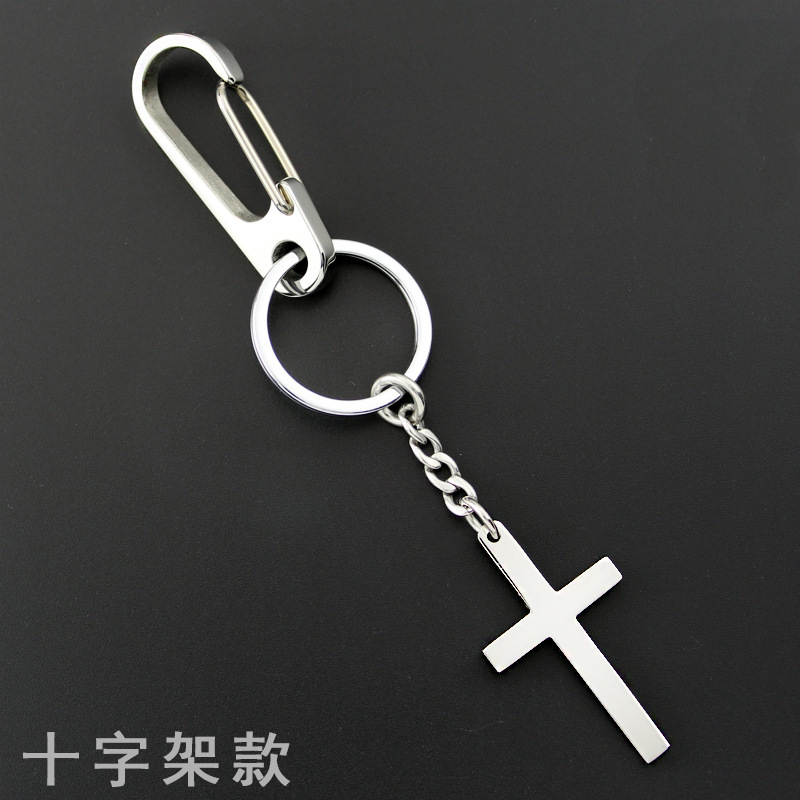 节日礼品不锈钢十字架钥匙扣男女腰挂汽车钥匙圈链节日礼物
