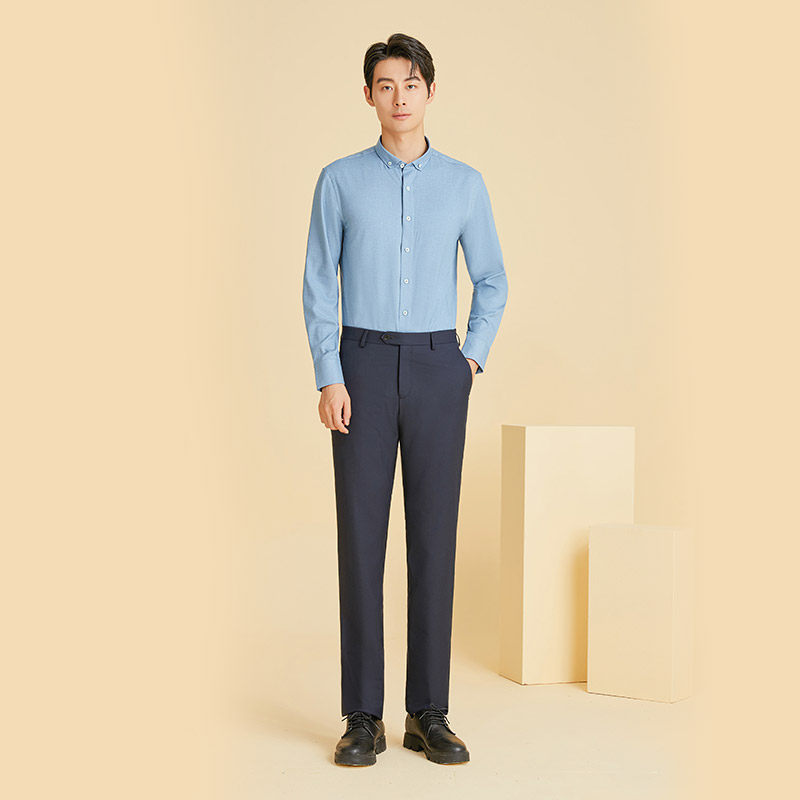 乔治白秋季男士商务西裤中腰纯色绵羊毛上班职业长裤子防静电