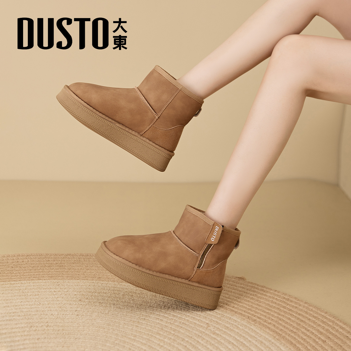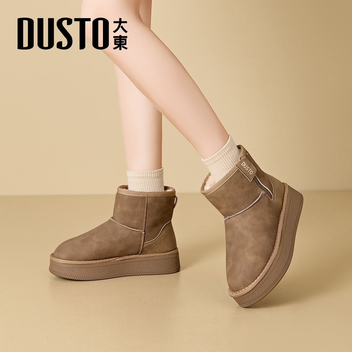 大东官方厚底雪地靴女款2025新款冬季加绒加厚短靴女防水保暖棉鞋
