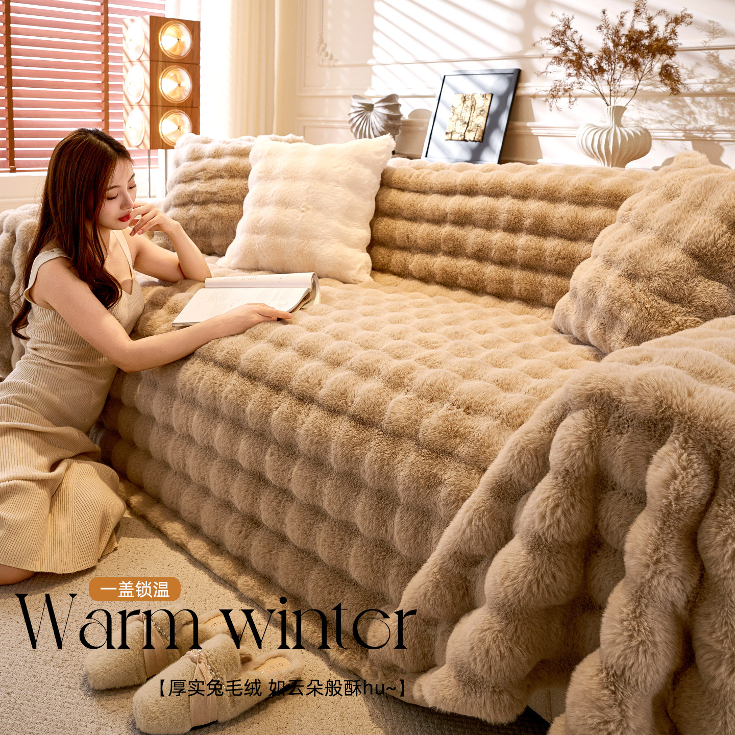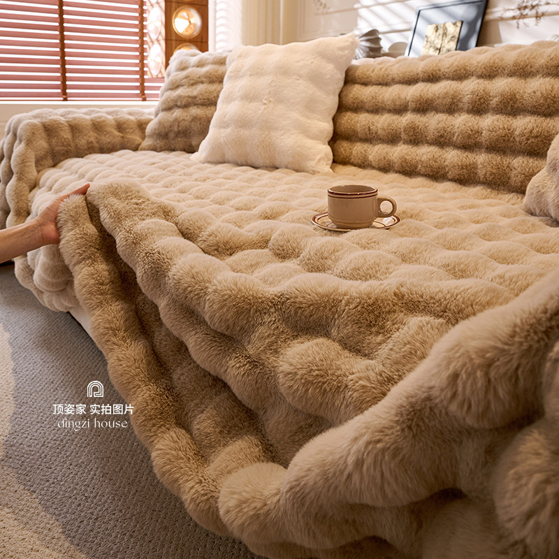 兔兔绒秋冬沙发盖布巾冬季毛绒防滑沙发套罩2025新款防猫抓坐垫毯