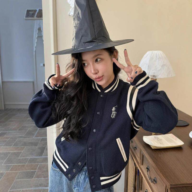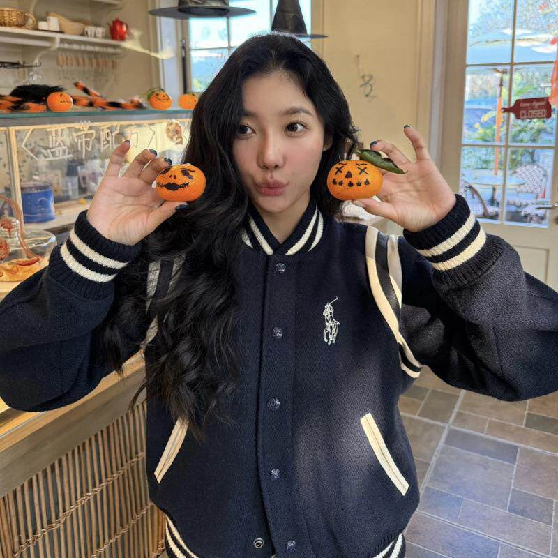 ●callmebabysoft小马标刺绣美式复古夹克毛呢拼接皮面棒球服外套