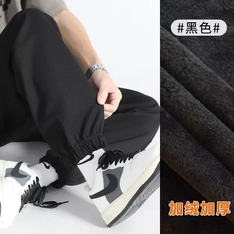 欧洲站冬季新款休闲裤子男2025新款束脚裤男生卫裤加绒裤子运动裤