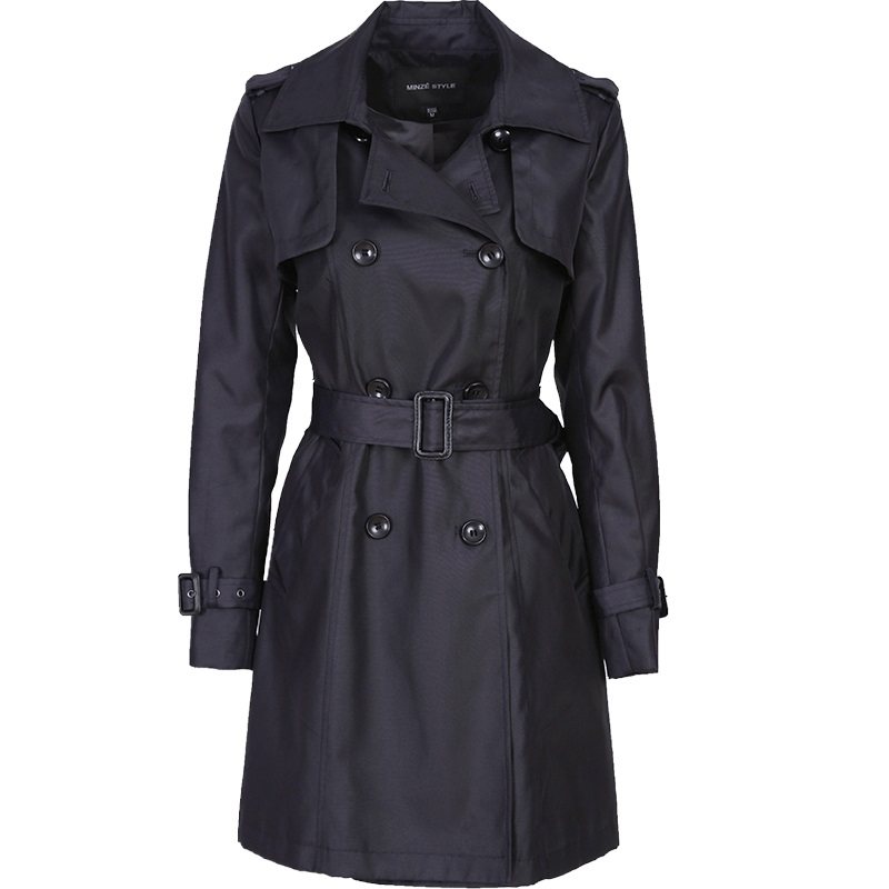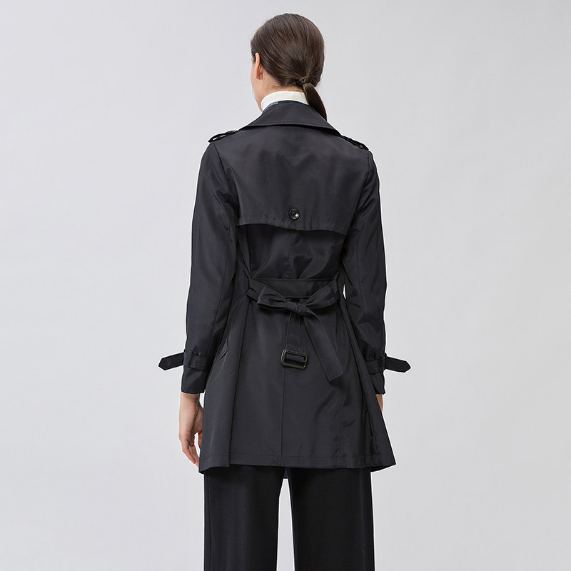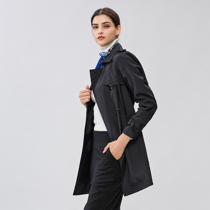 名师路女装春装新款英伦风衣女中长款翻领时尚纯色修身外套