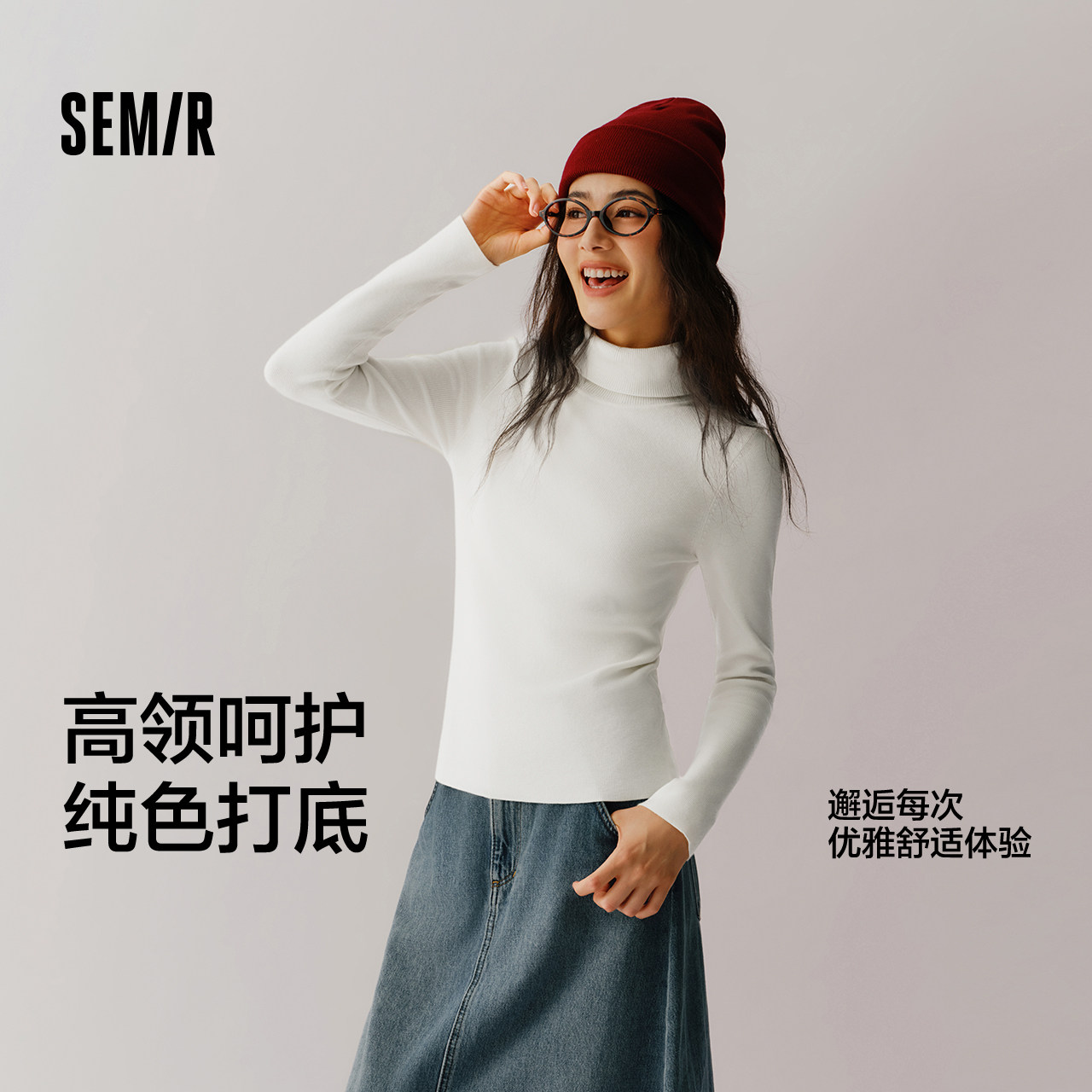 森柔毛衫|森马毛衣女基础款高领紧身白色冬季新款纯色套头衫百搭