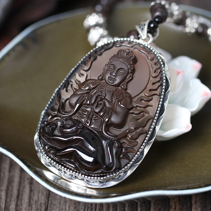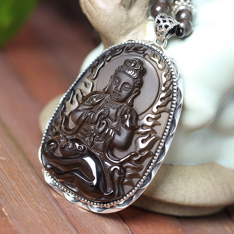 2026年冰种黑曜石925银大日如来十二生肖属猴本命佛守护神吊坠