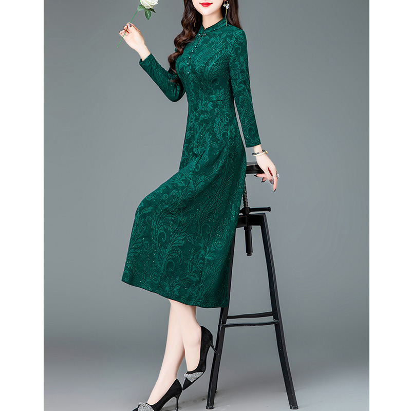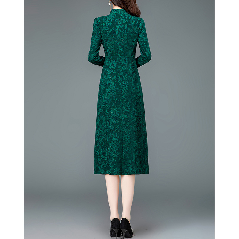 高端长袖碎花连衣裙女2025新款秋装妈妈修身春秋新中式旗袍长裙子