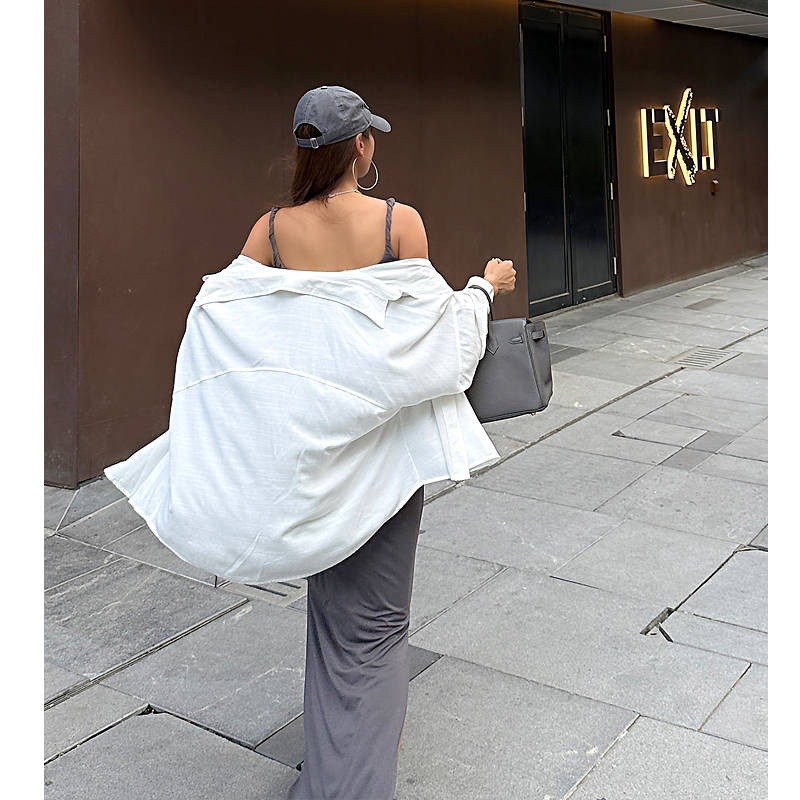 丸丸Mruco 老钱风!棉麻松弛感慵懒宽松休闲防晒衬衫白色垂感