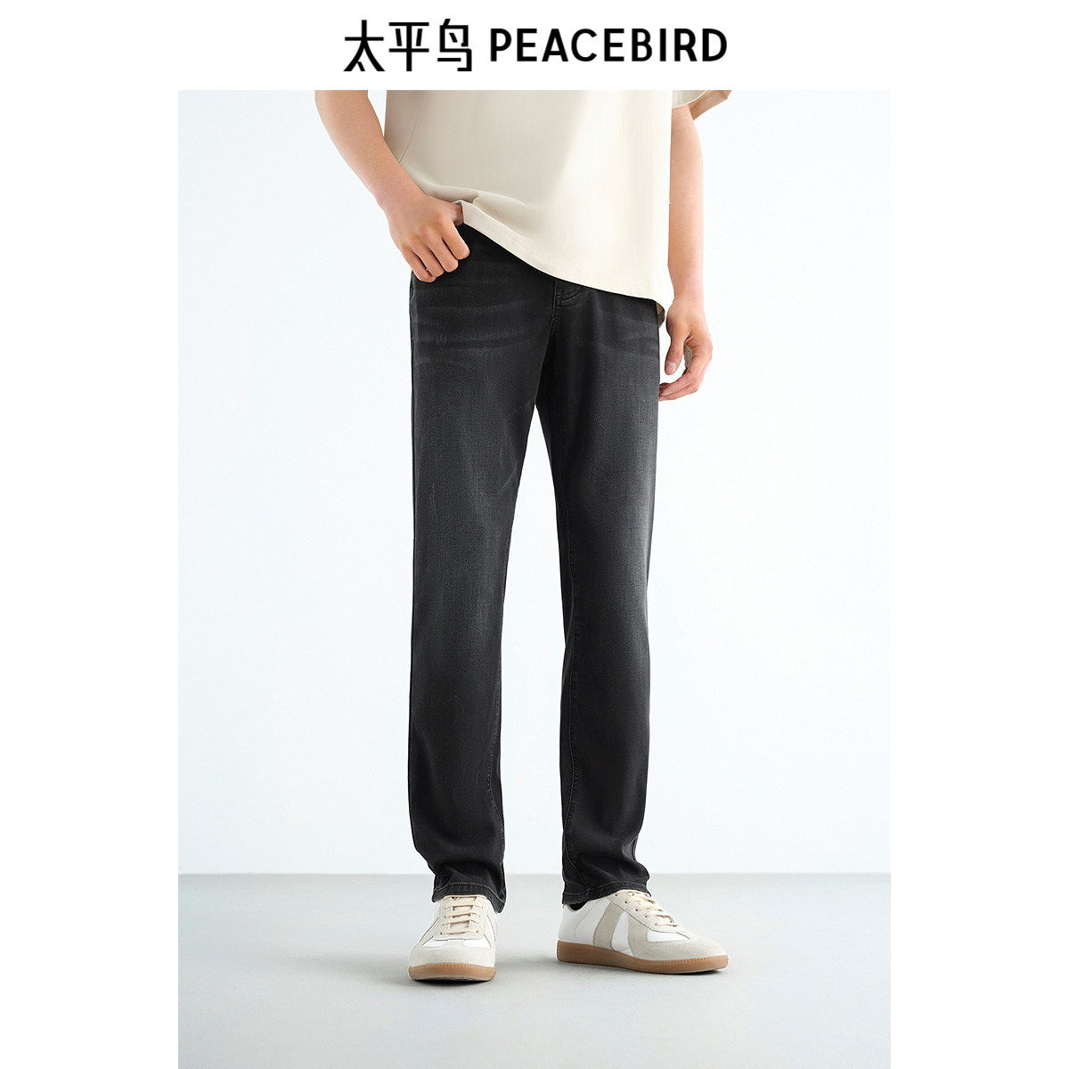 【防褪色】太平鸟男装牛仔裤25夏新休闲水洗复古修身黑色牛仔潮