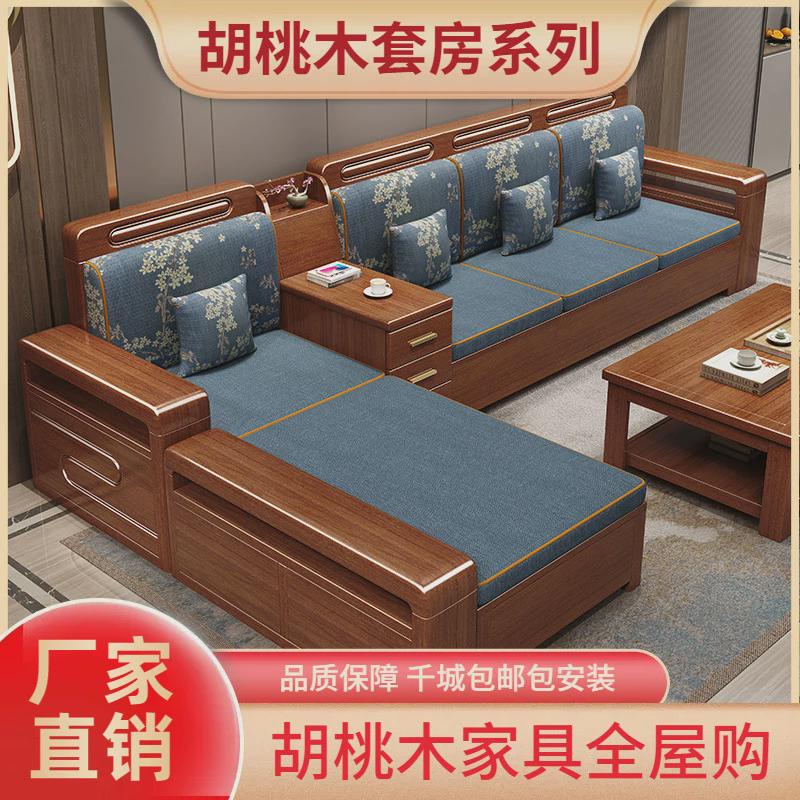 胡桃木实木沙发客厅现代新中式储物两用贵妃冬夏木质经济型家具