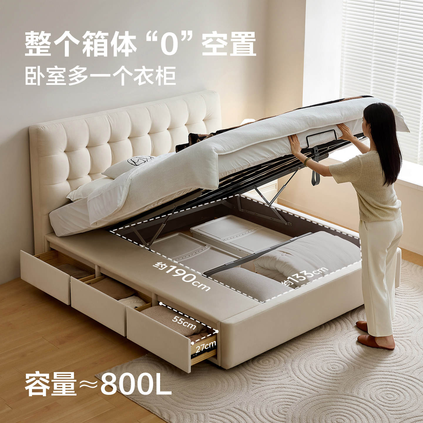 全友家居2025新款猫爪绒布艺软包单人床卧室小户型收纳储物双人床