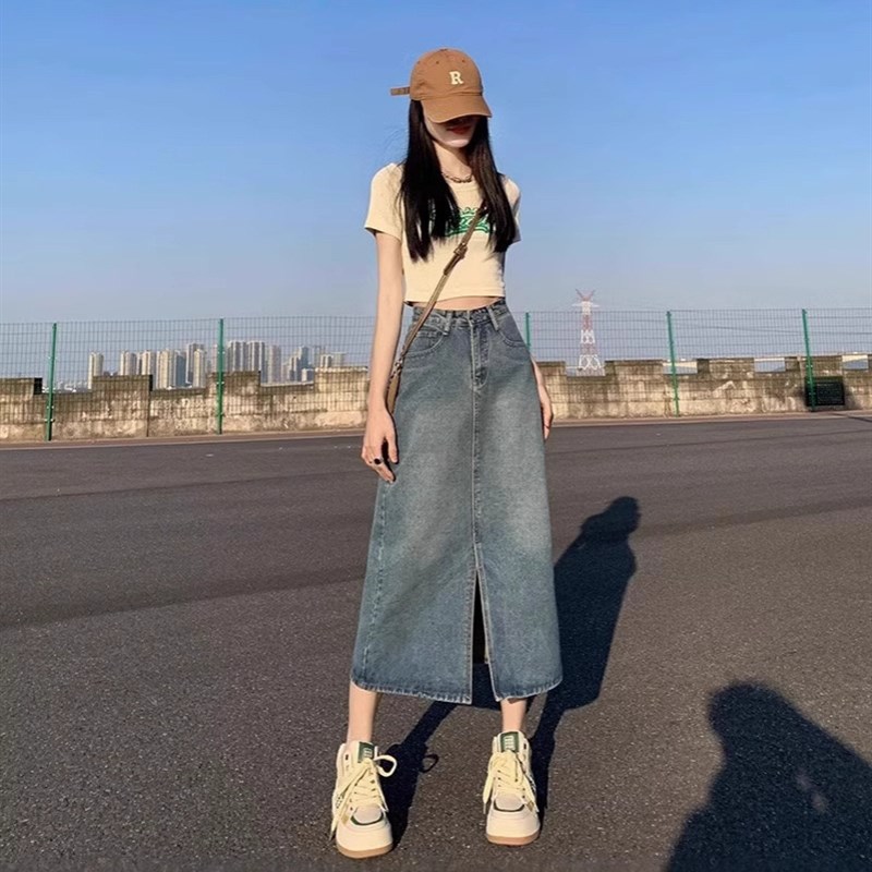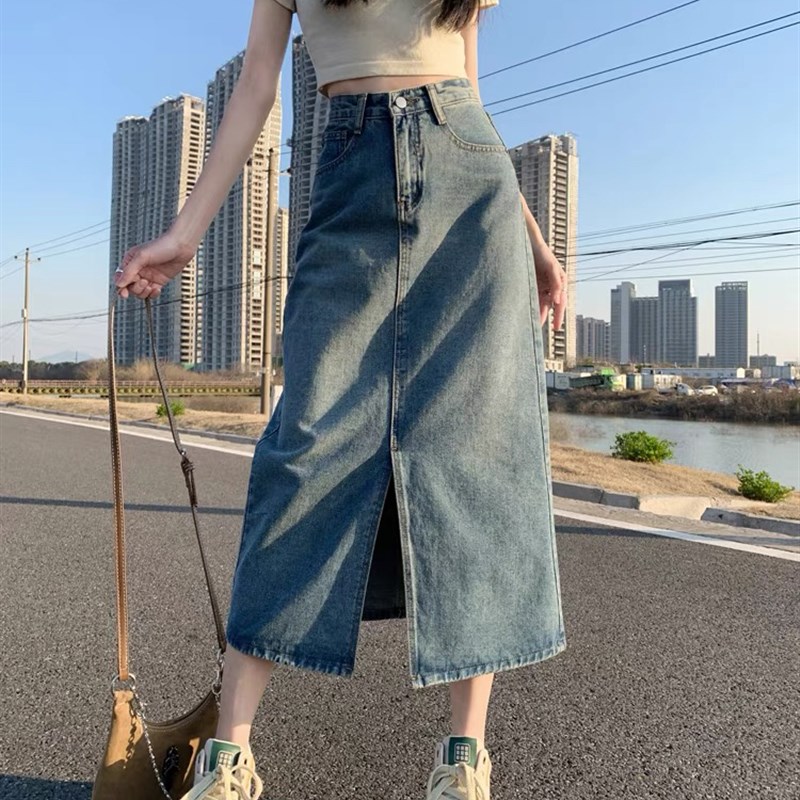 牛仔半身裙女秋季高腰包臀裙2025新款复古直筒宽松a字中长款半裙