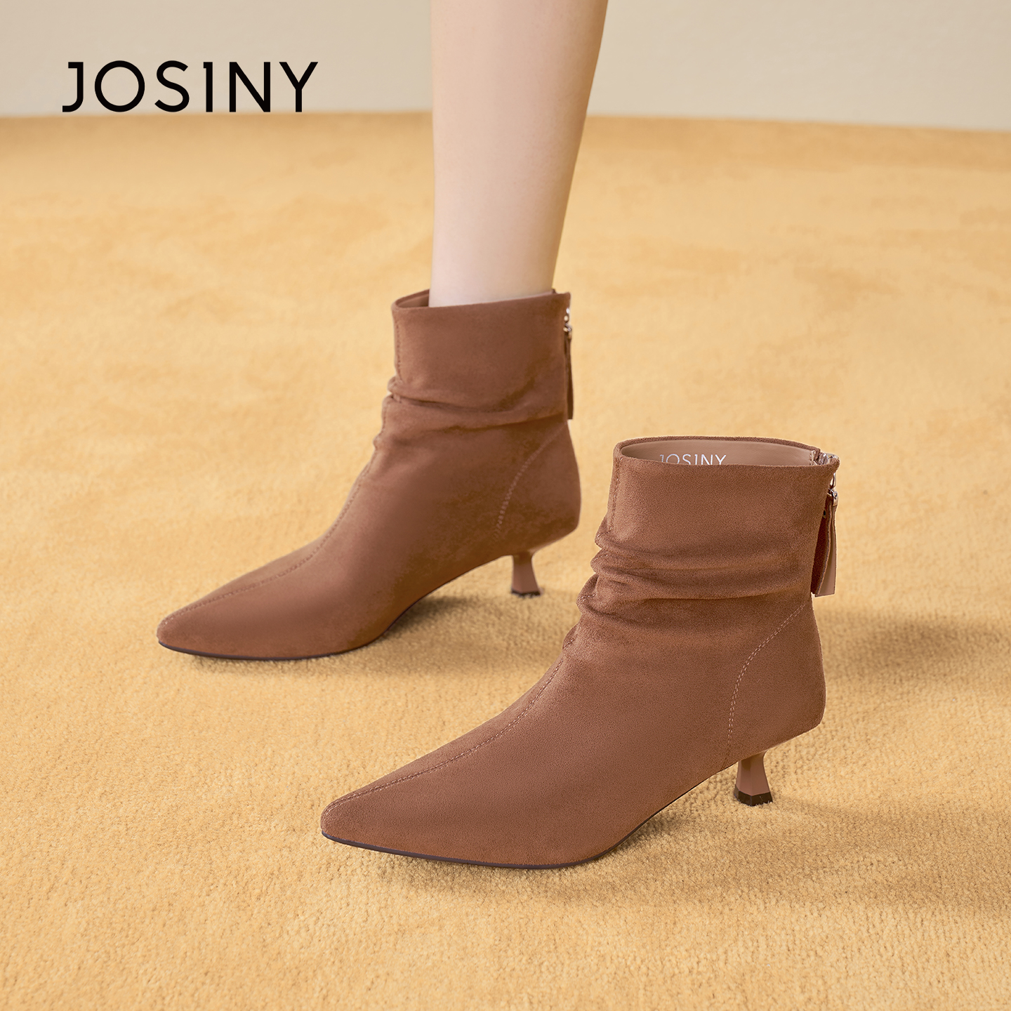 卓诗尼25新款尖头细跟炸街小短靴