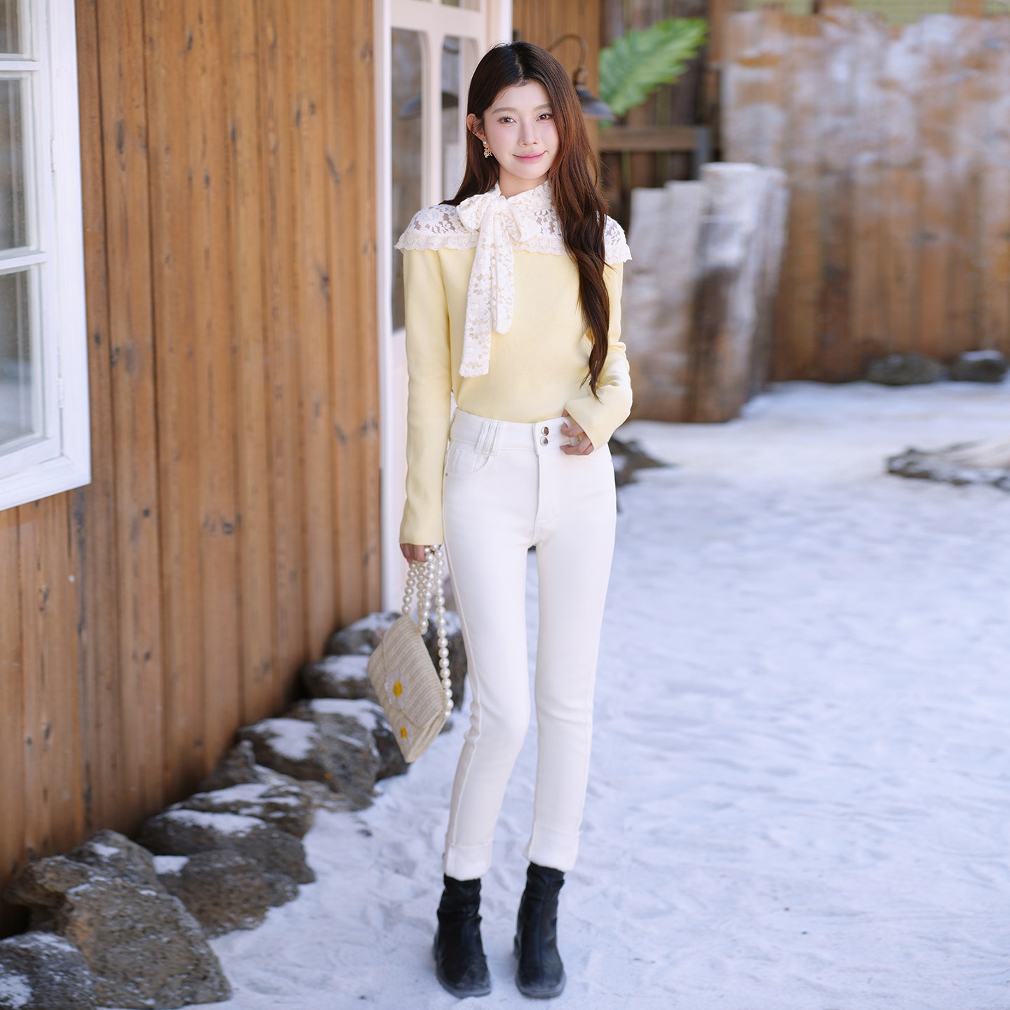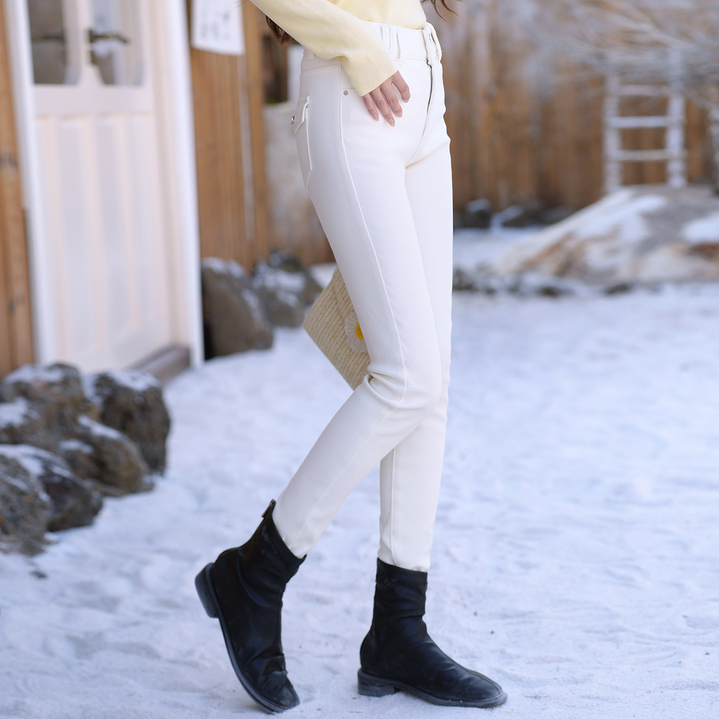 ATAR高腰加绒牛仔裤女冬装新款显瘦修身小脚裤百搭紧身纯色长裤子