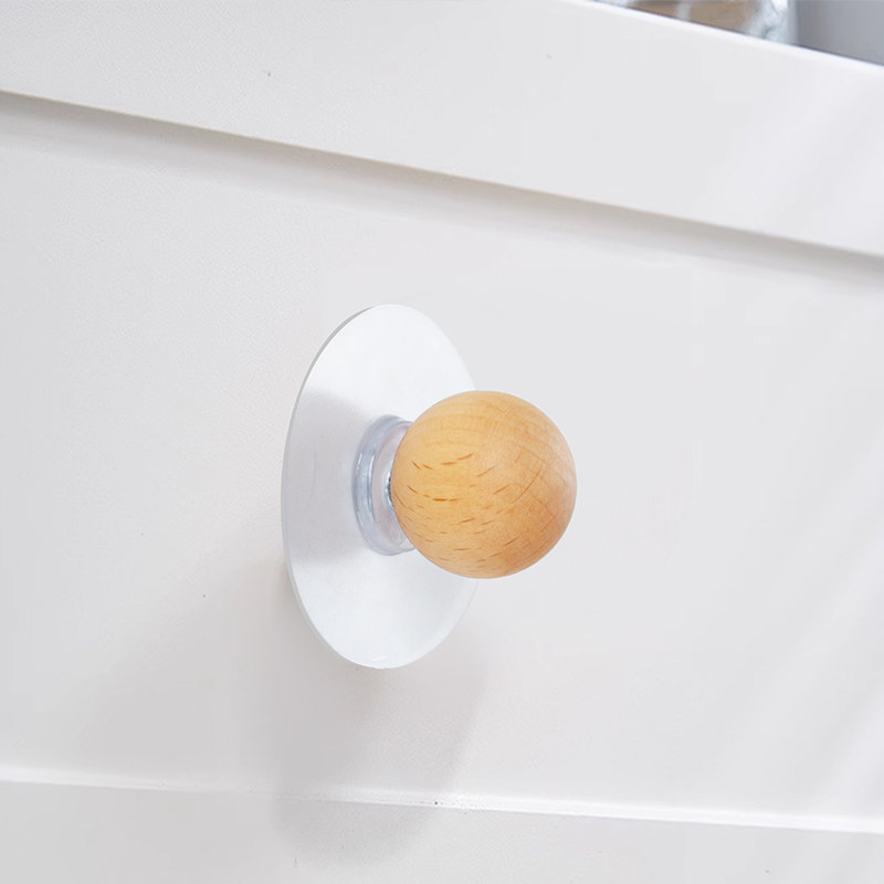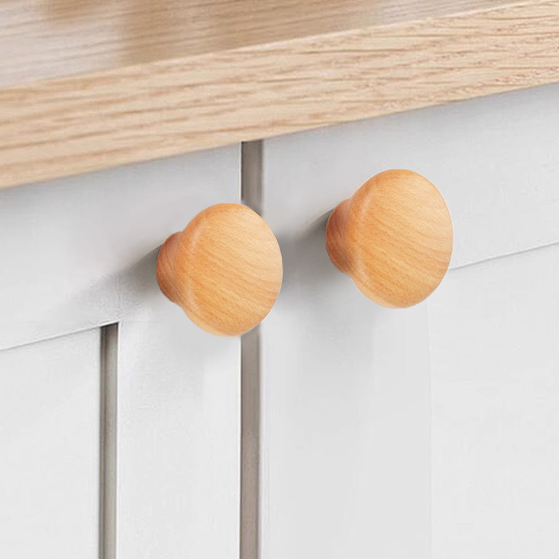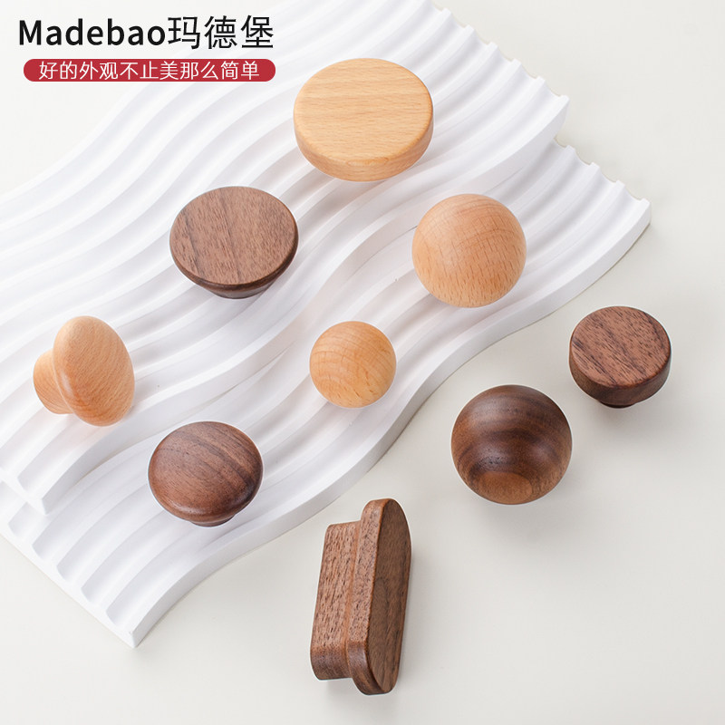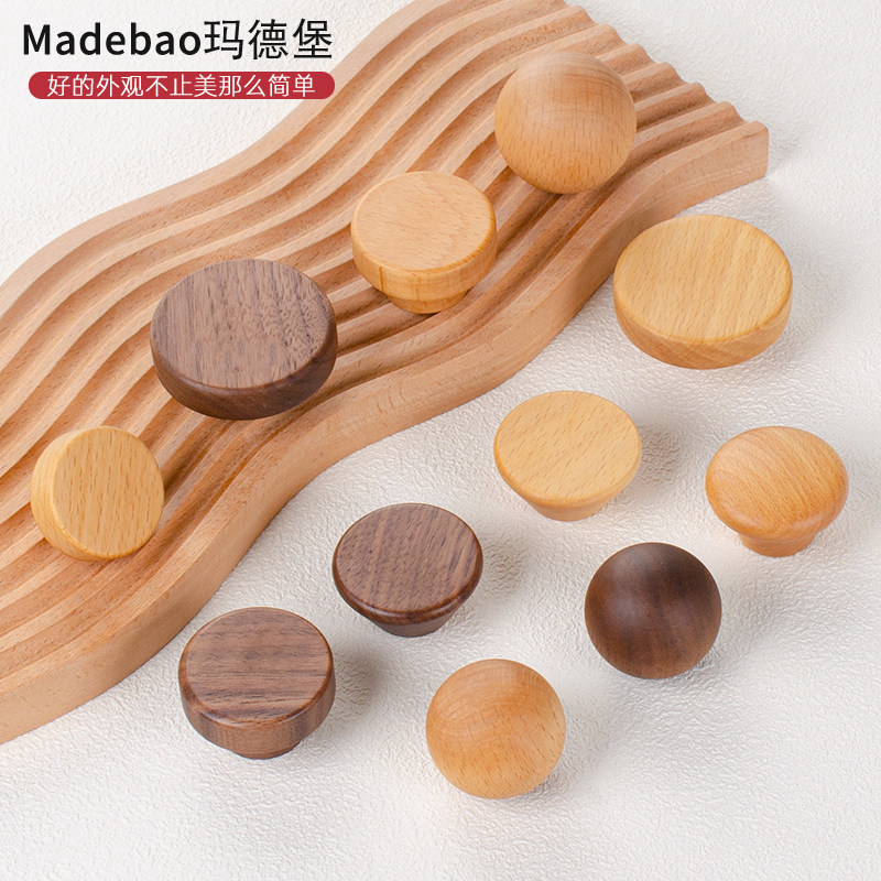 胡桃原木色儿童柜门单孔实木把手中古风抽屉橱柜免打孔拉手自粘