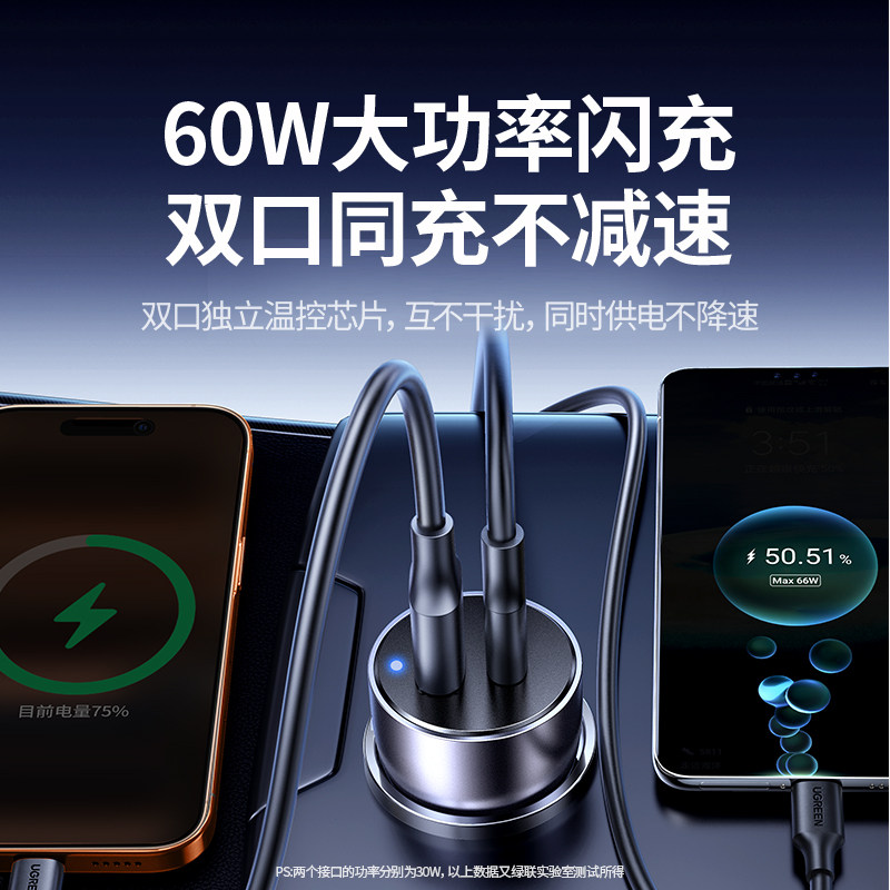 【同充不降速】绿联总60W车充