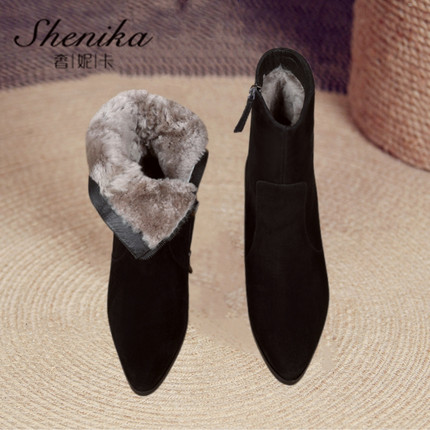 奢妮卡雪地靴女粗跟羊猄马丁靴