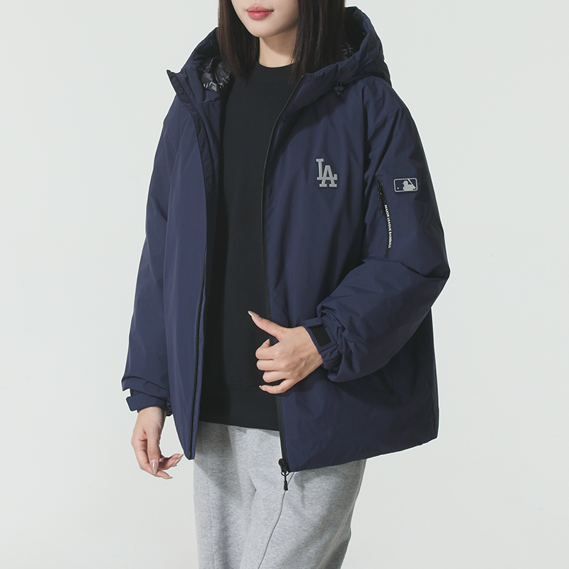 MLB男装简约时尚百搭羽绒服保暖舒适连帽棉羽夹克休闲上衣