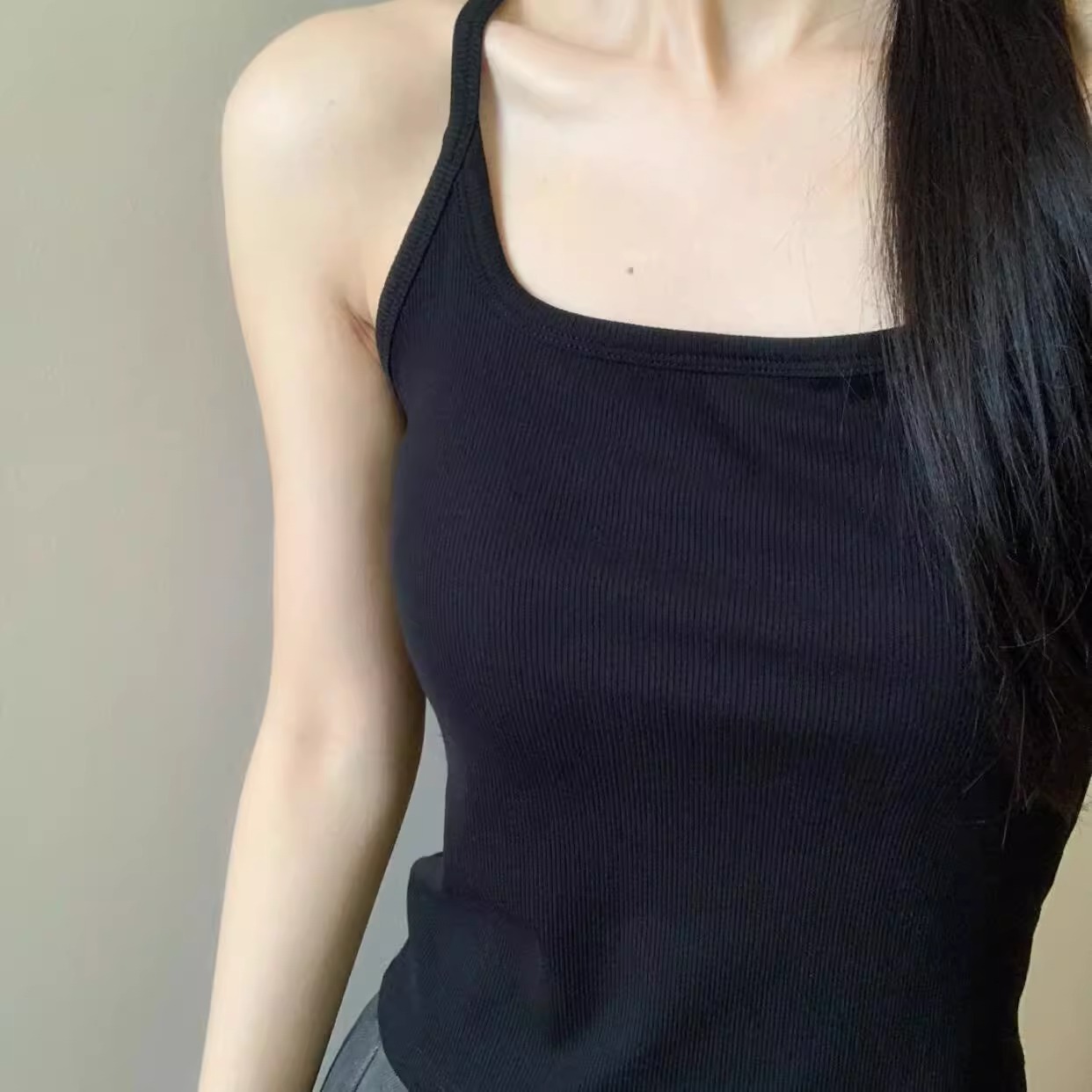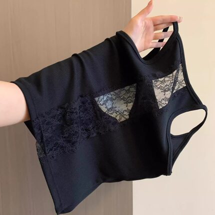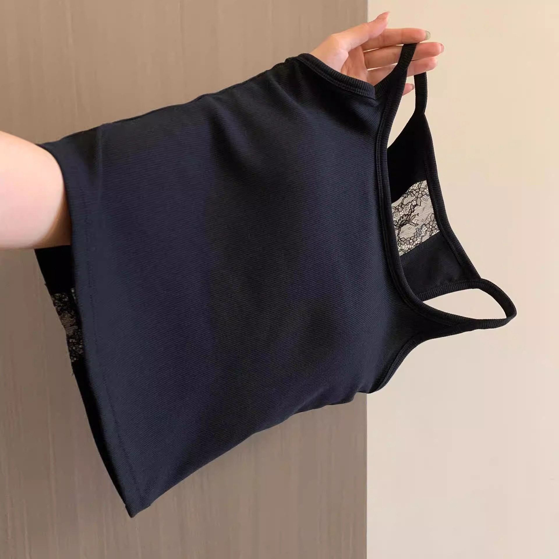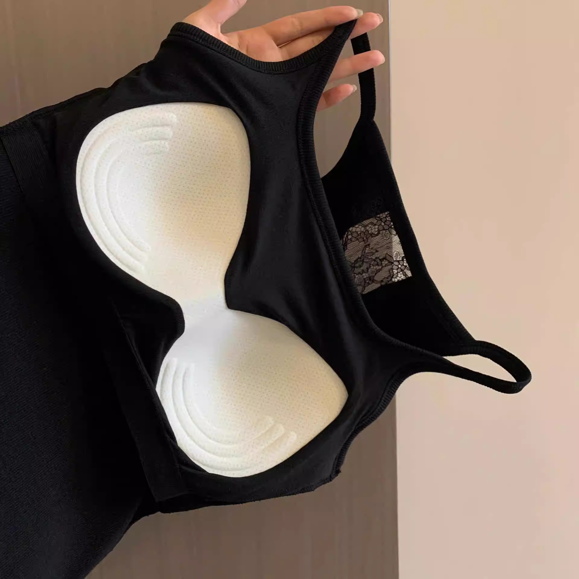 美背性感后背镂空蕾丝吊带内衣带胸垫背心免穿文胸一体式薄款上衣