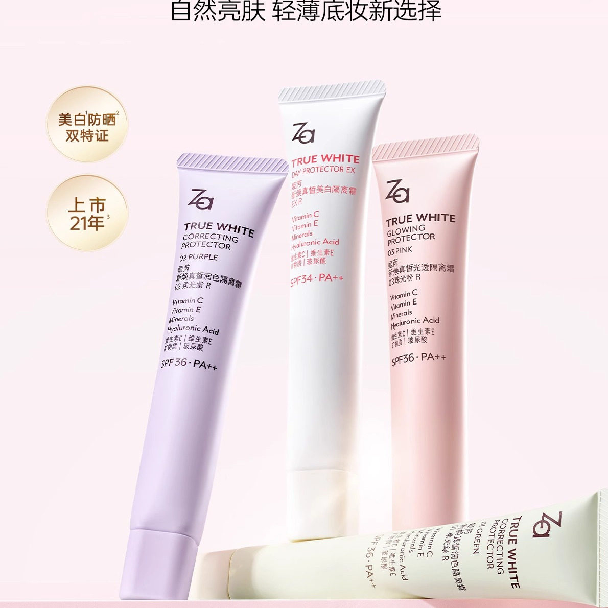 Za姬芮隔离霜女学生防晒遮瑕三合一妆前打底乳隐形毛孔白紫色正品