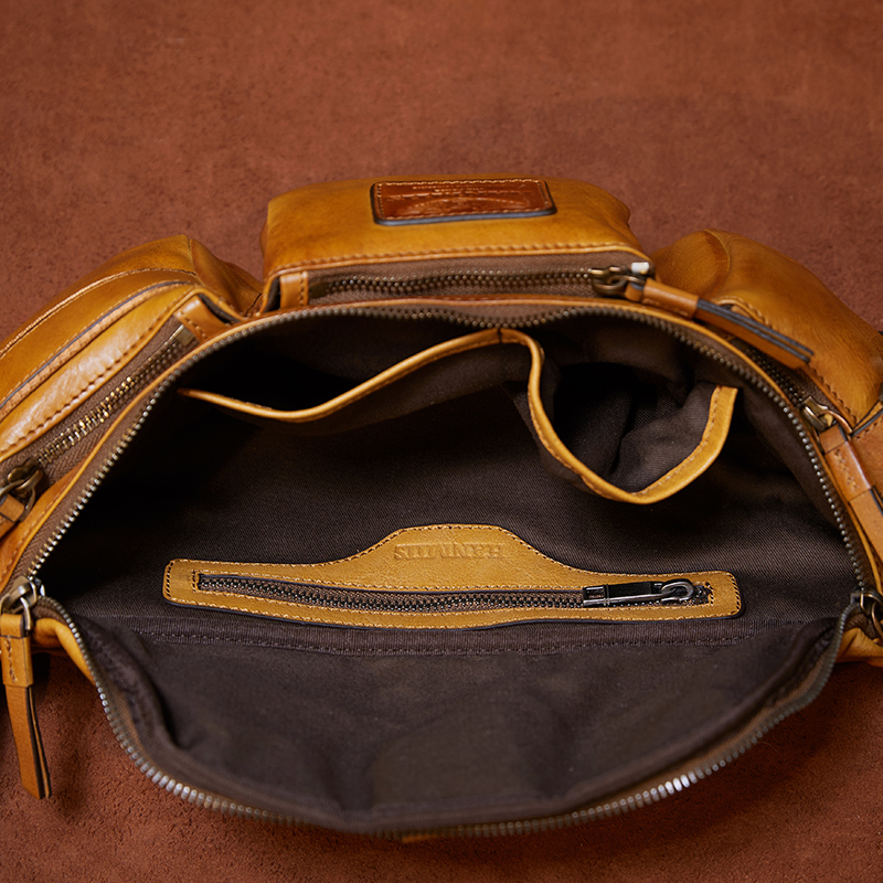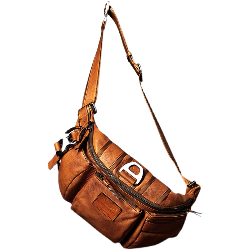 【原创奢品】头层牛皮胸包真皮男胸包休闲包单肩包机车复古斜挎包