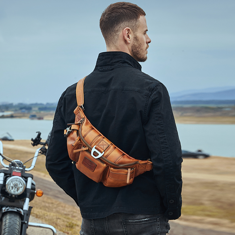 头层牛皮胸包机车骑行斜挎包