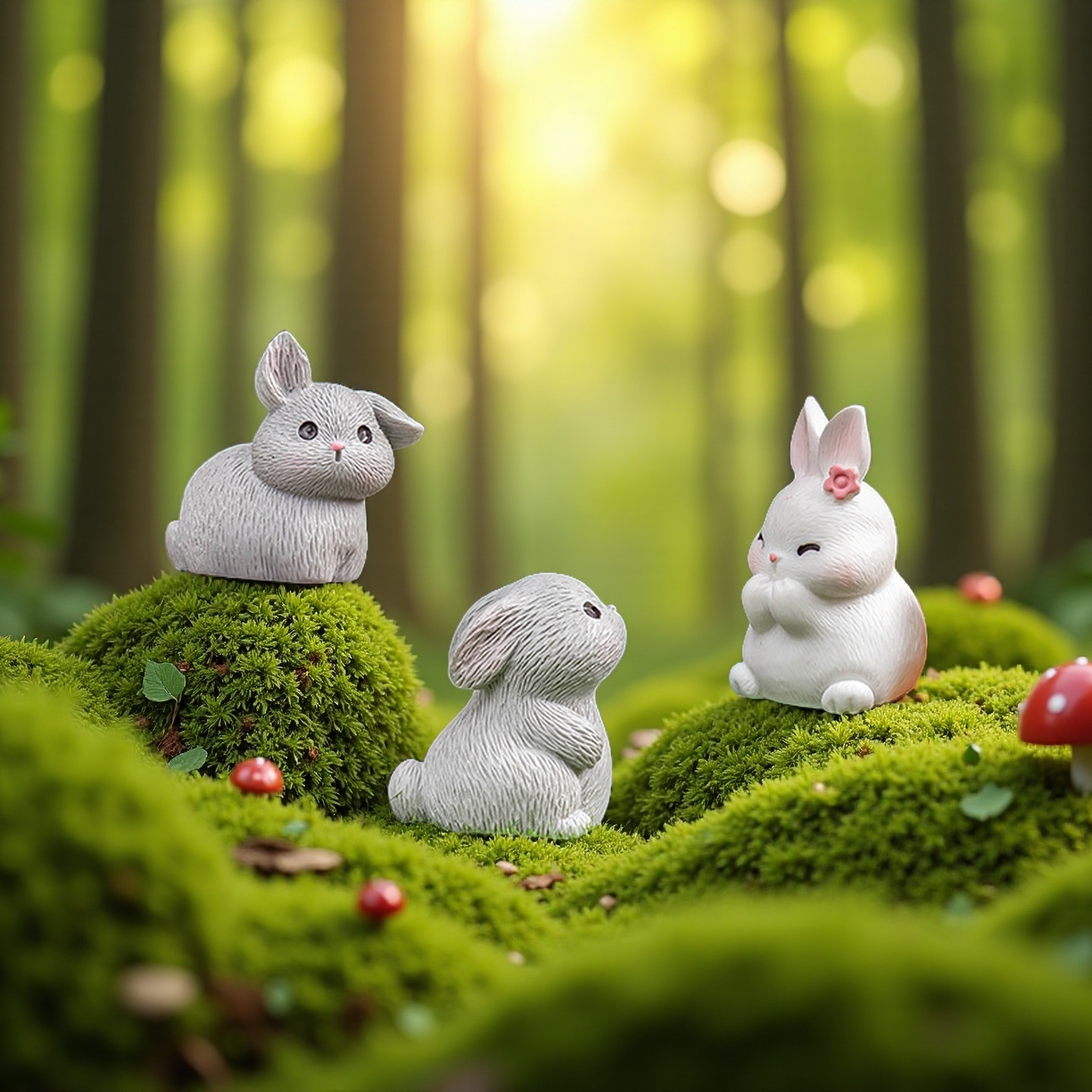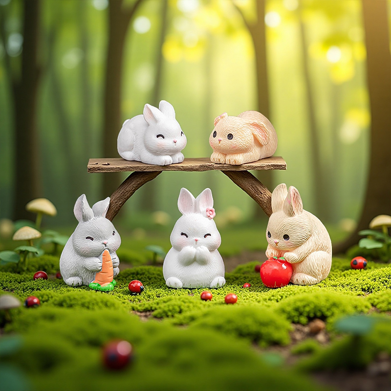无聊了摆几只可爱小兔子工位桌面车载小摆件苔藓盆景微景观治愈系