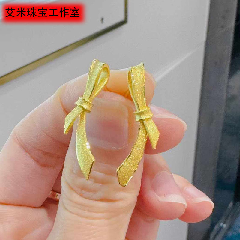 周大福香港专柜正品999.9足金计价磨砂蝴蝶结耳饰黄金耳钉女款