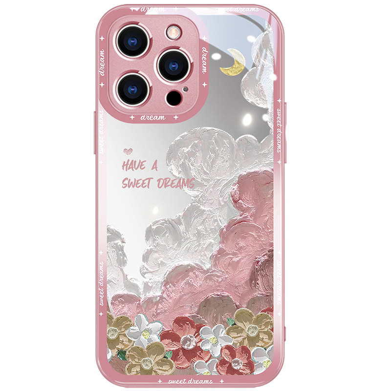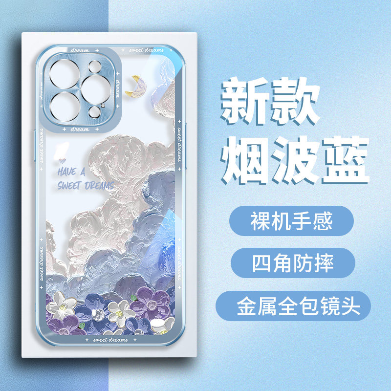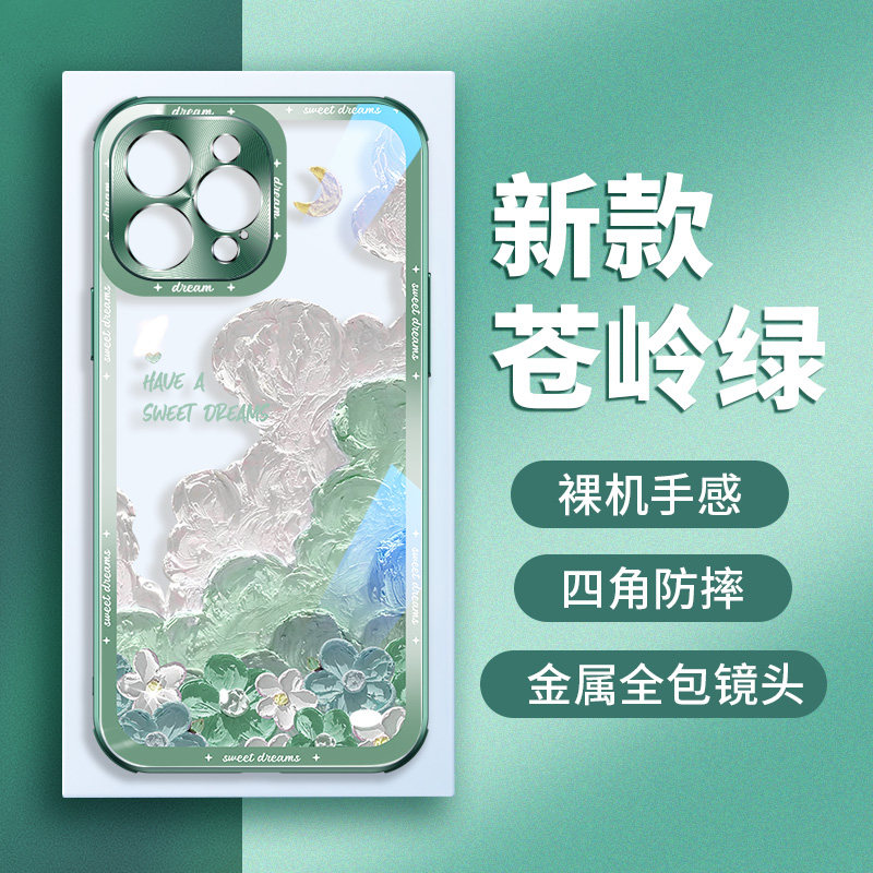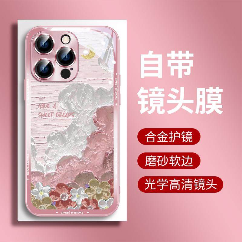 镜面玻璃苹果17promax手机壳新款iphone16油画云朵13高级感14创意15奢华12时尚小清新15plus女款11金属镜头薄