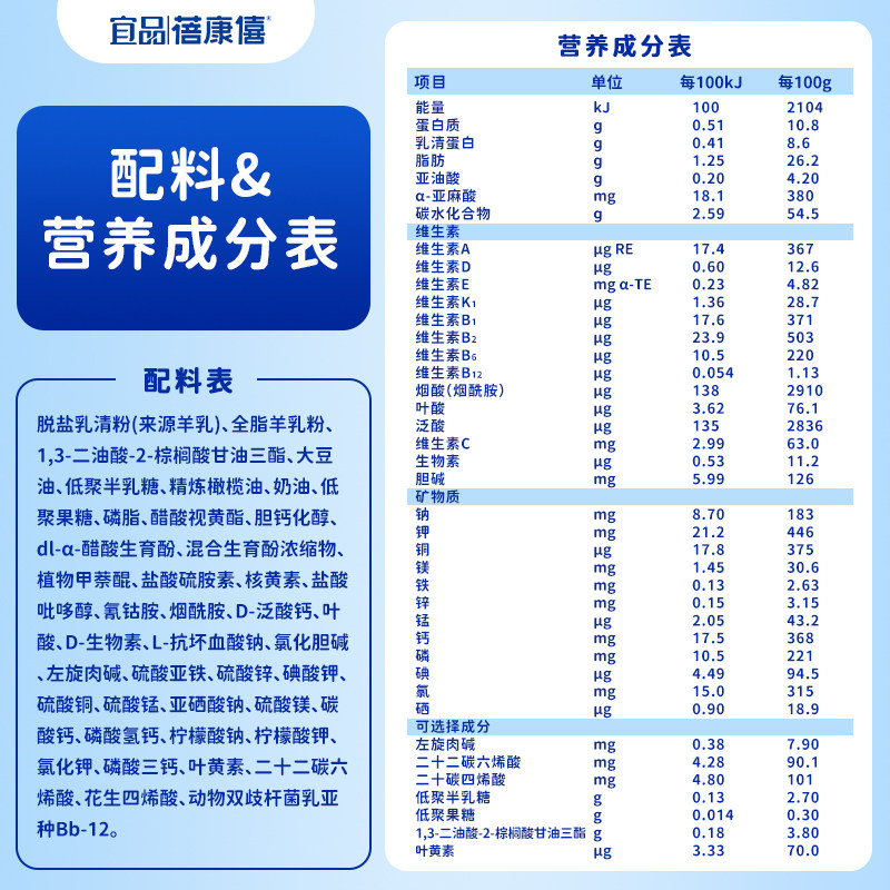 蓓康僖1段宜品小羊奶粉200g×1罐