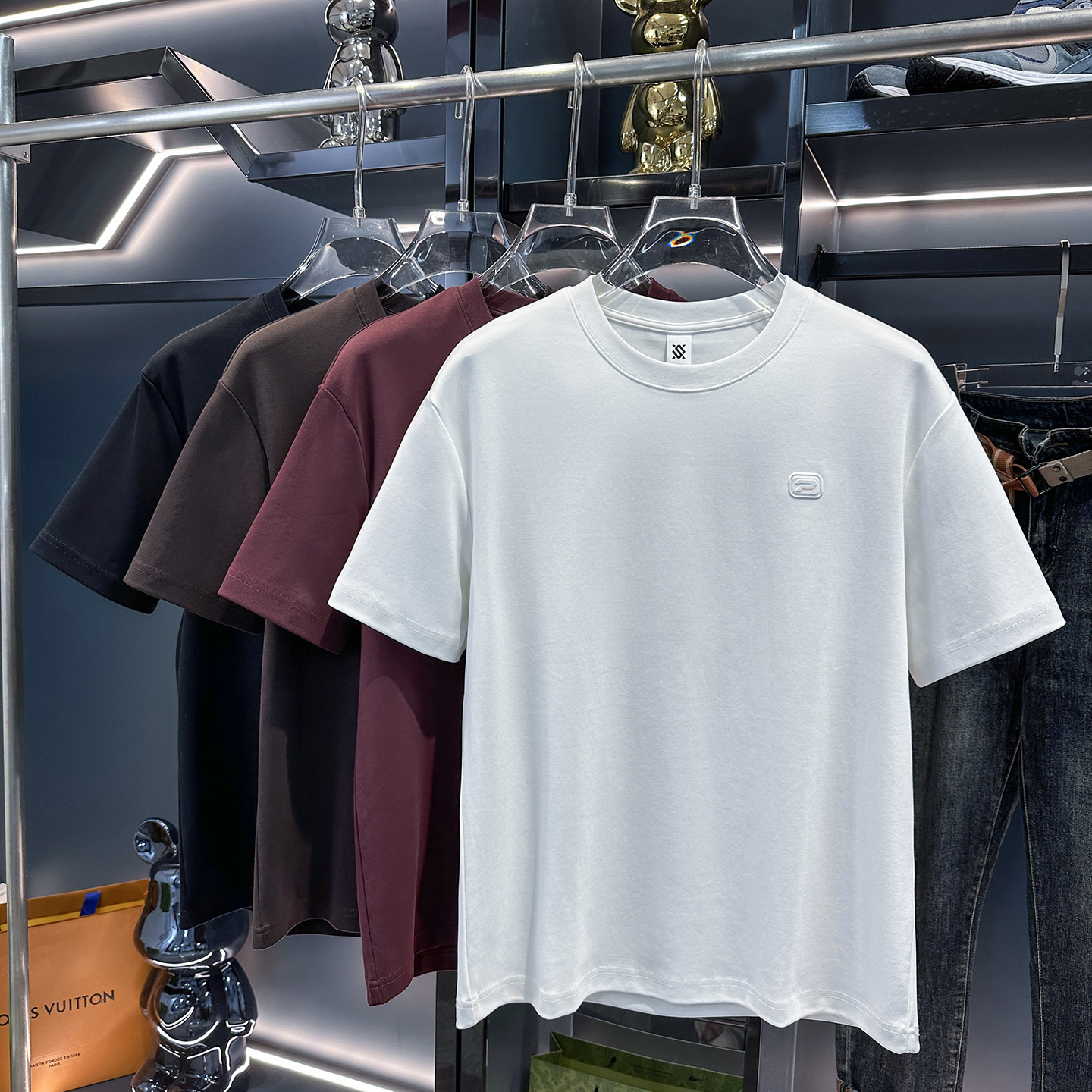 欧货轻奢男士秋冬短袖打底衫圆领简约潮牌百搭重磅加厚T恤上衣