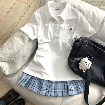 原创收腰polo衫JK制服日系甜美校供学院风刺绣白色短袖t恤上衣夏
