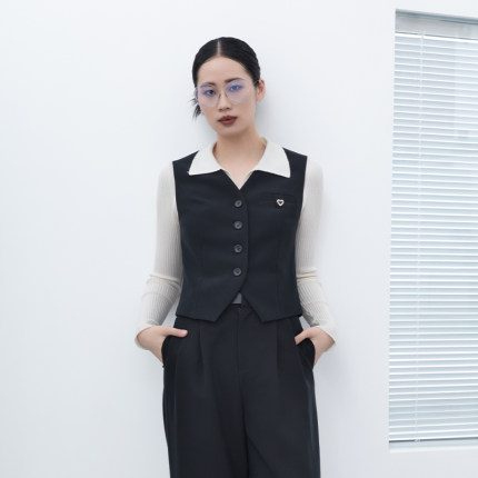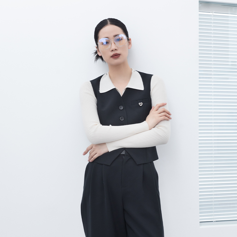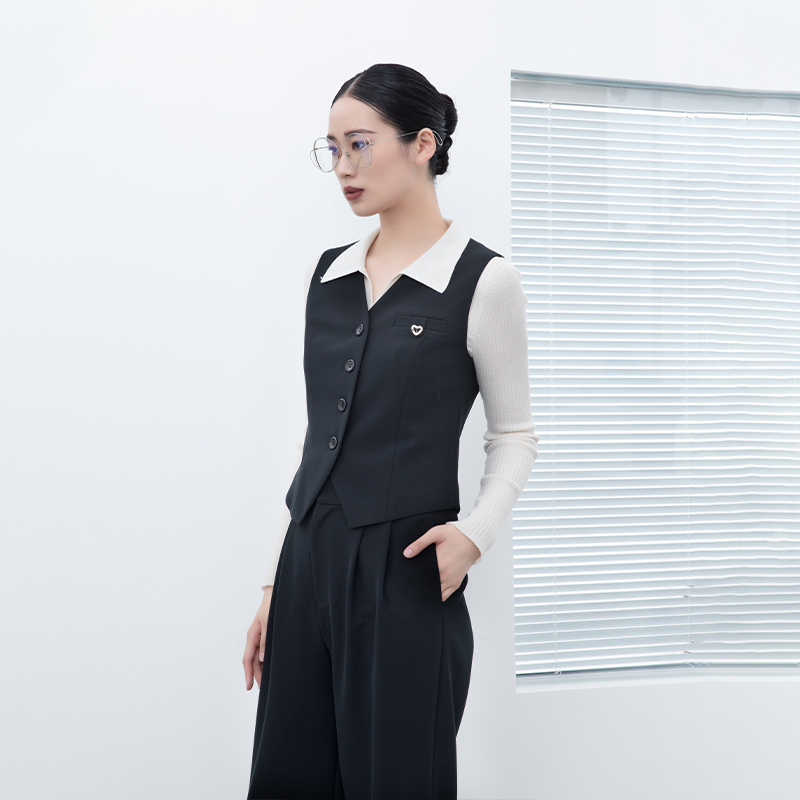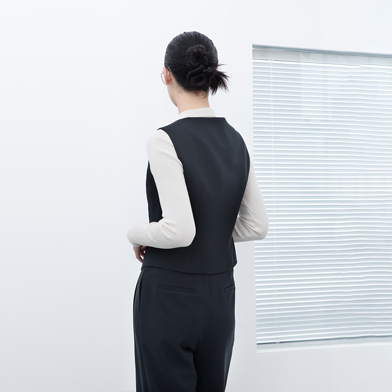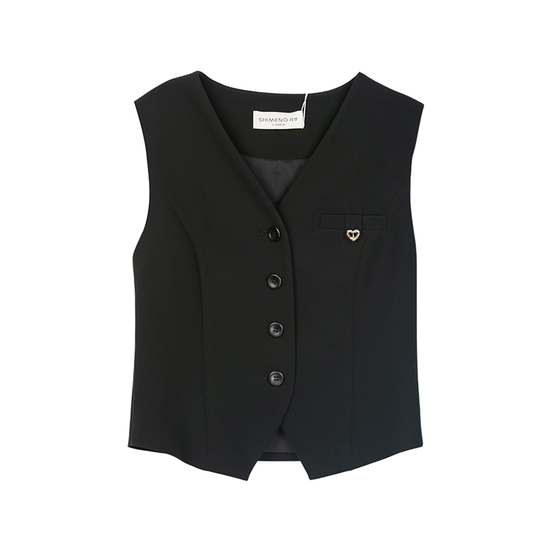 诗梦女装秋季新款黑色V领西装马甲显瘦单排扣气质百搭通勤休闲