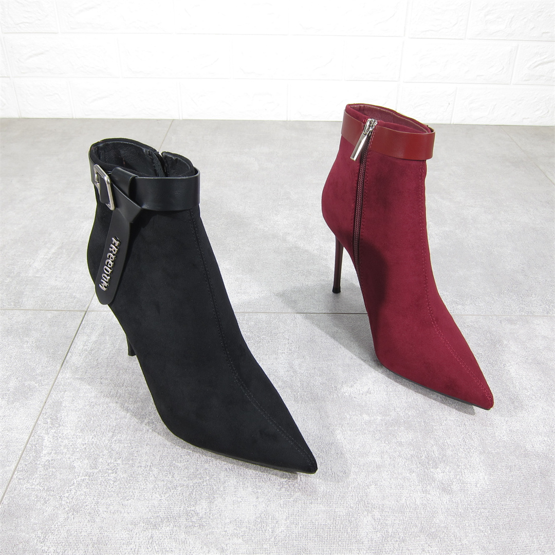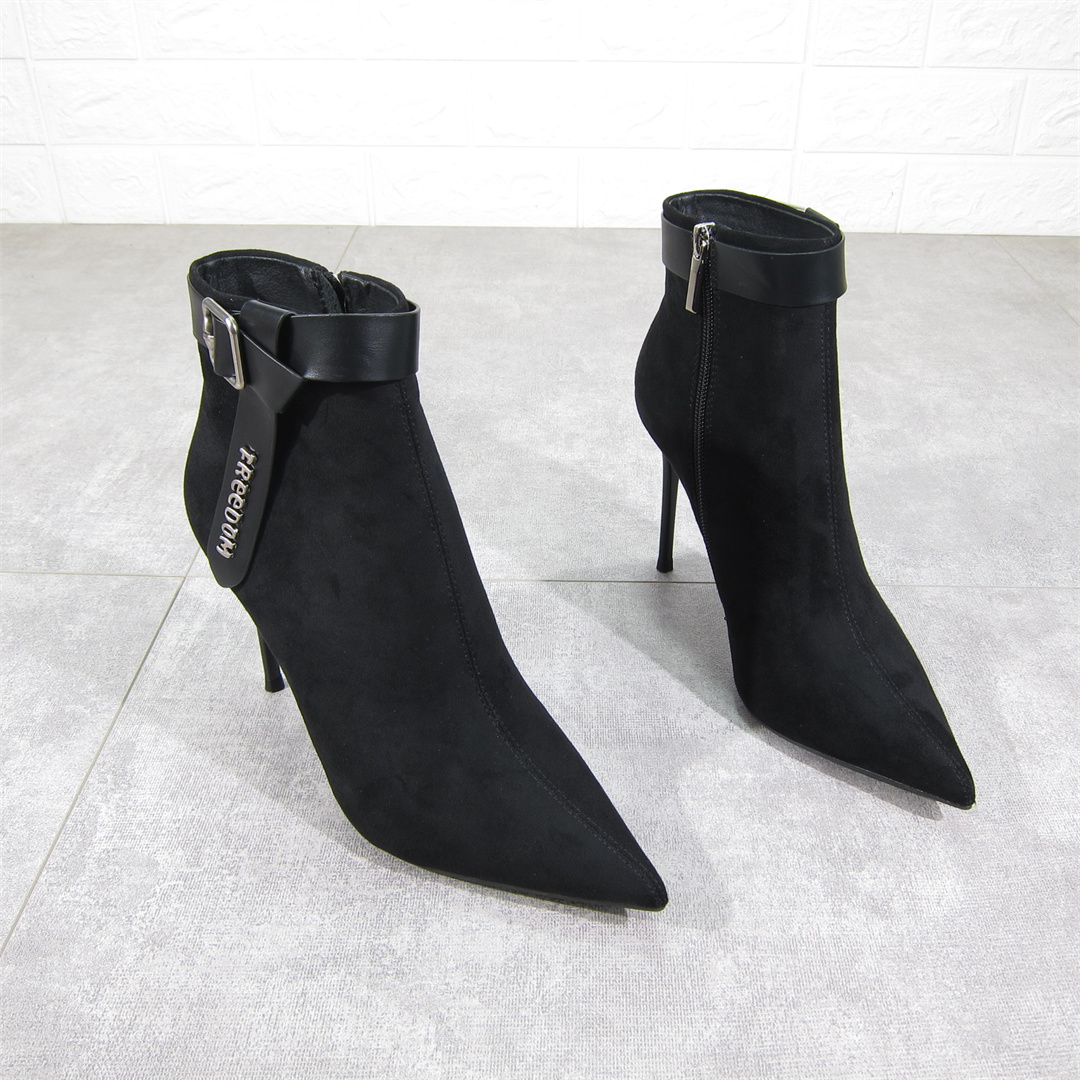 尖头细跟高跟短靴侧拉链装饰