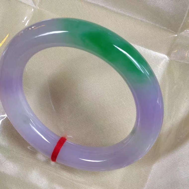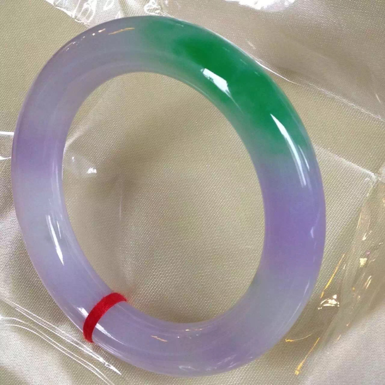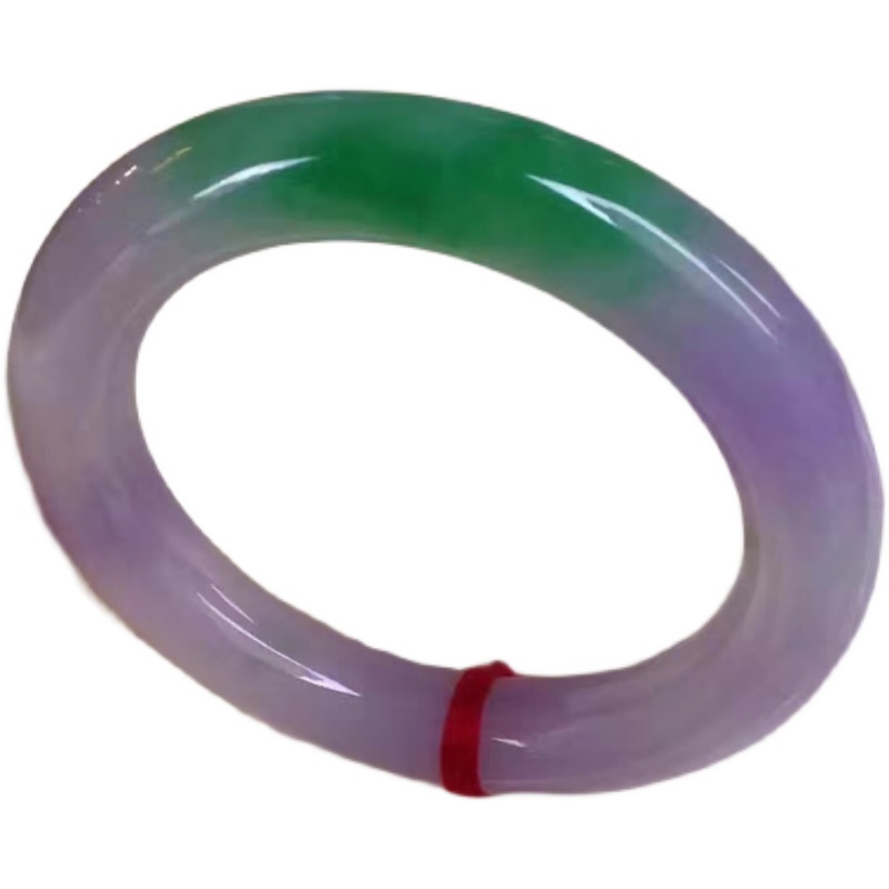 周大諨翡翠手镯春彩圆条玉手镯冰种紫罗兰阳绿正圈女冰糯种春带彩