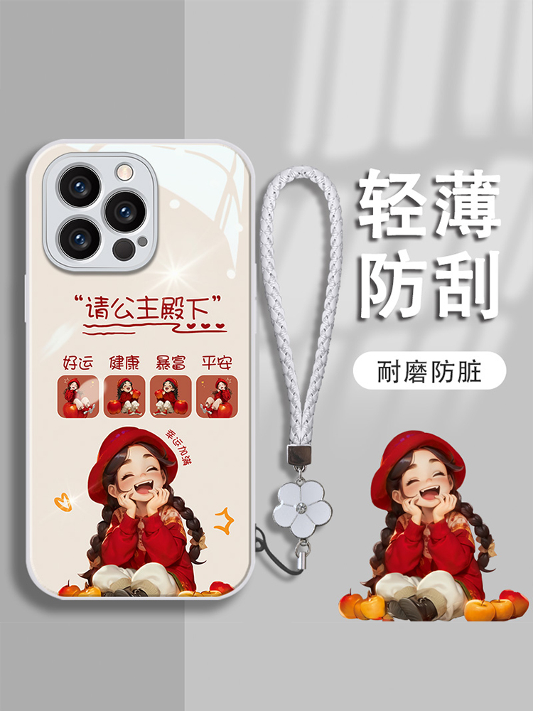 红色公主殿下适用苹果15手机壳iphone14promax新年款ip13/12/11女xr可爱xsmax全包7/8plus创意个性mini玻璃6s