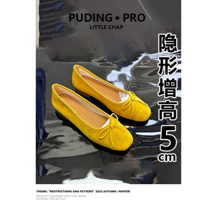 真皮版~小众浅口内增高豆豆鞋女2026夏季新款小个子配裙子单鞋子