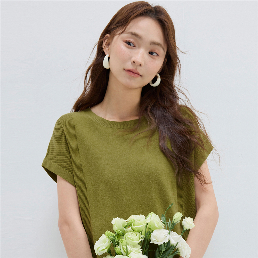 设计师款佐丹奴短袖针织衫女夏季拼接宽松圆领蝙蝠袖上衣18355205