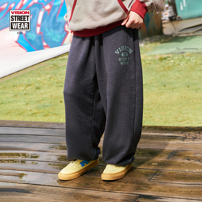 VISION KIDS 复古街头针织宽松运动长裤卫裤3色男女童装25春新款