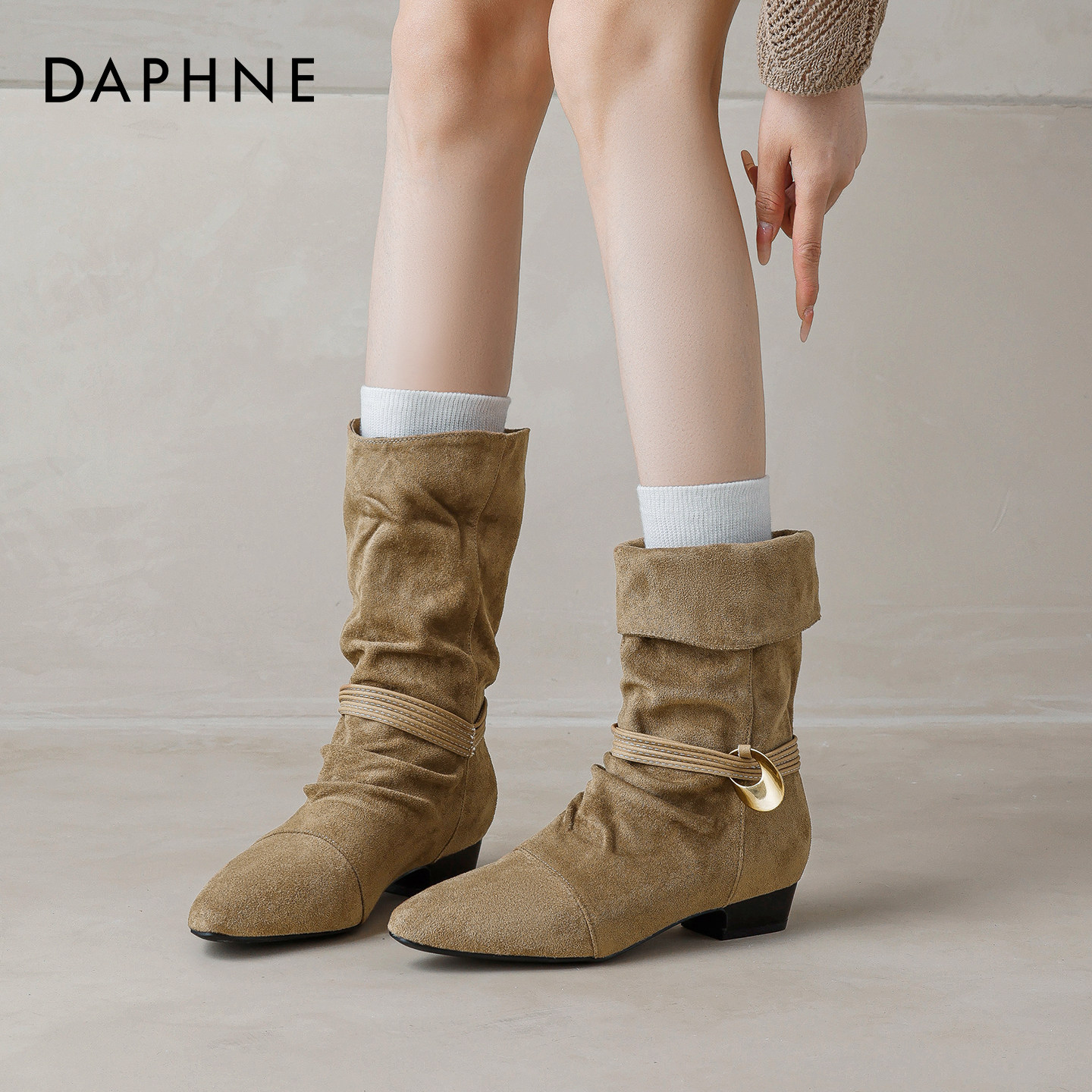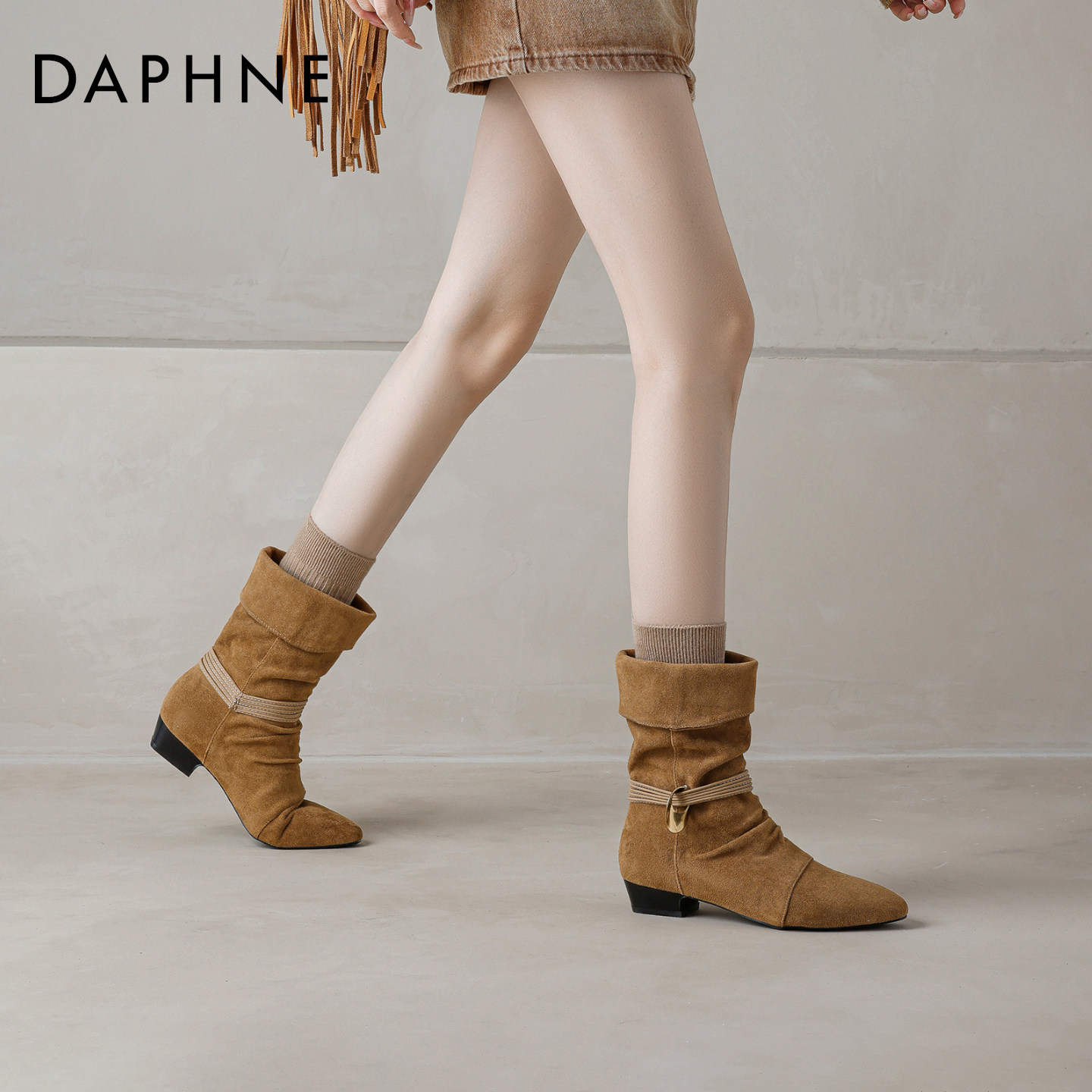 【达芙妮】堆堆靴尖头西部牛仔靴