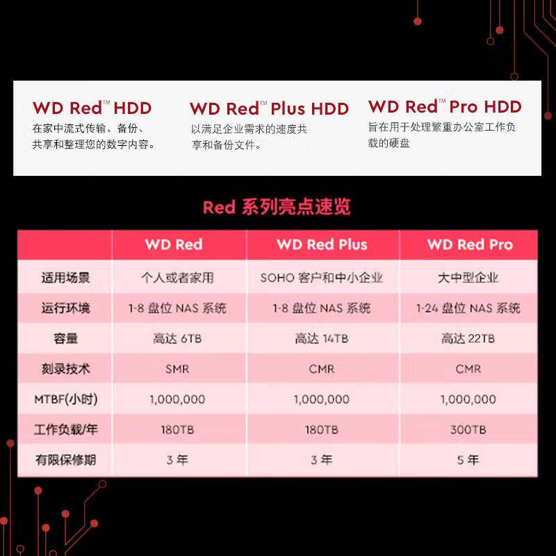西部数据WD40EFPX/ZZ NAS硬盘4TB 西数红盘SATA接口 CMR垂直记录