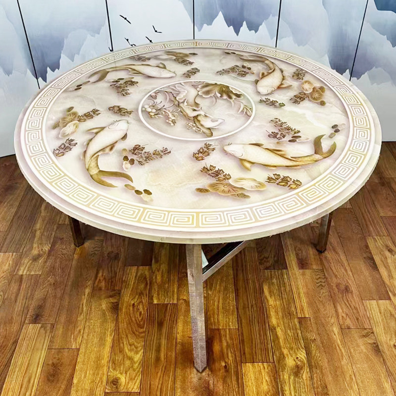 不锈钢折叠桌子家用餐桌圆桌烤火桌娱乐取暖桌便携U收纳桌加厚彩