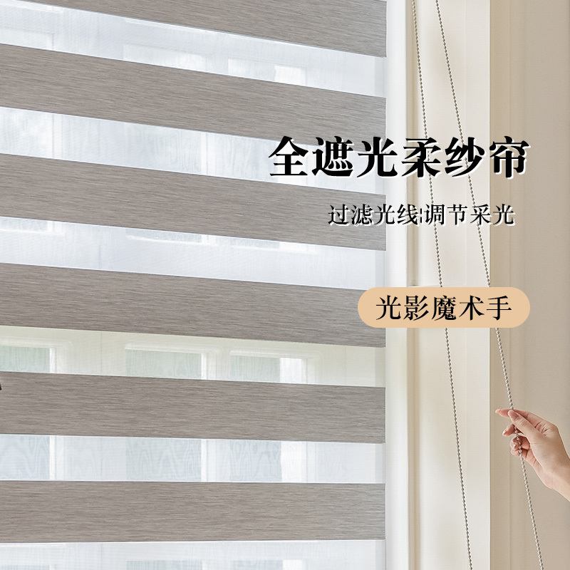 卫生间柔纱帘窗帘B1级防水全遮光客厅办公室书房浴室拉珠卷帘升降