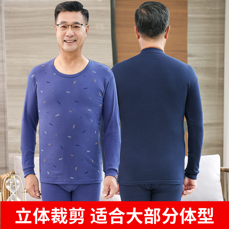 中老年秋衣秋裤男士纯棉套装老人爸爸薄款全棉保暖内衣大码打底衫