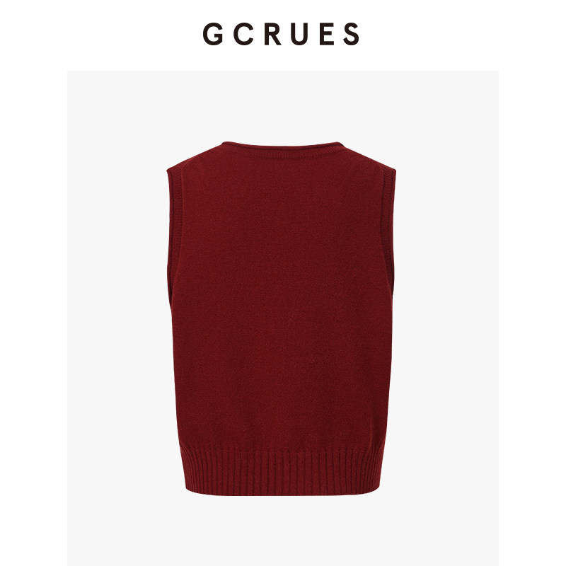 GCRUES商场同款复古v针织马甲女叠穿马夹背心无袖坎肩G12C00A0262