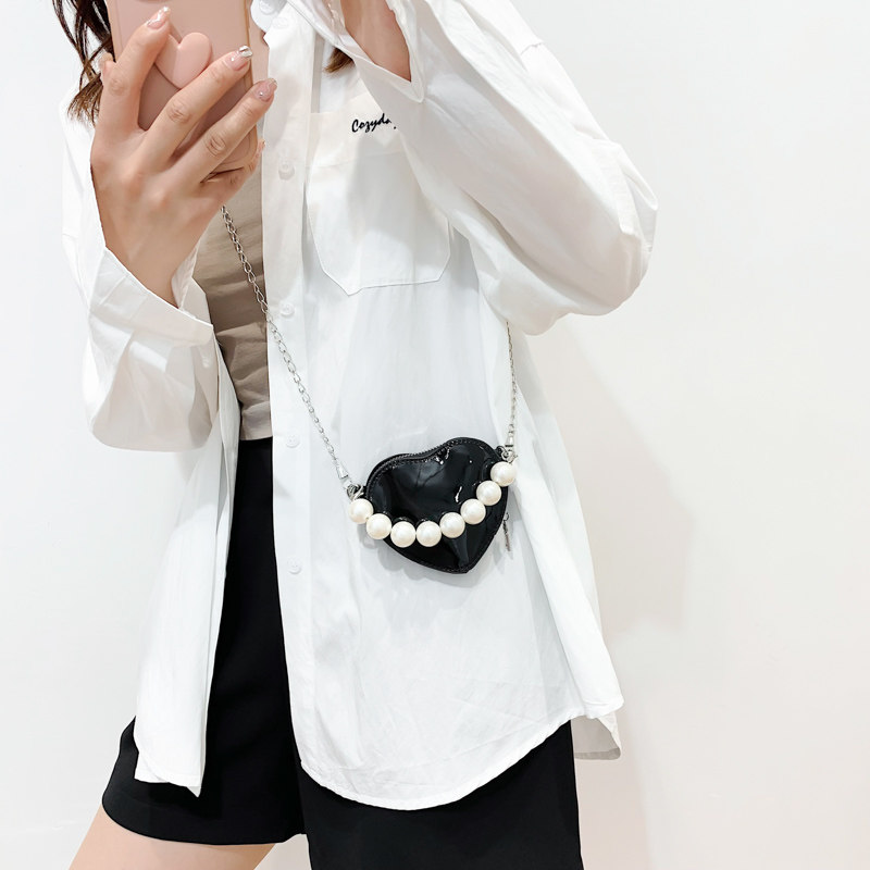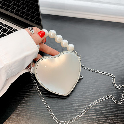爱心桃迷你小包链条斜挎单肩包百搭仙女气质珍珠手提包小香风潮包